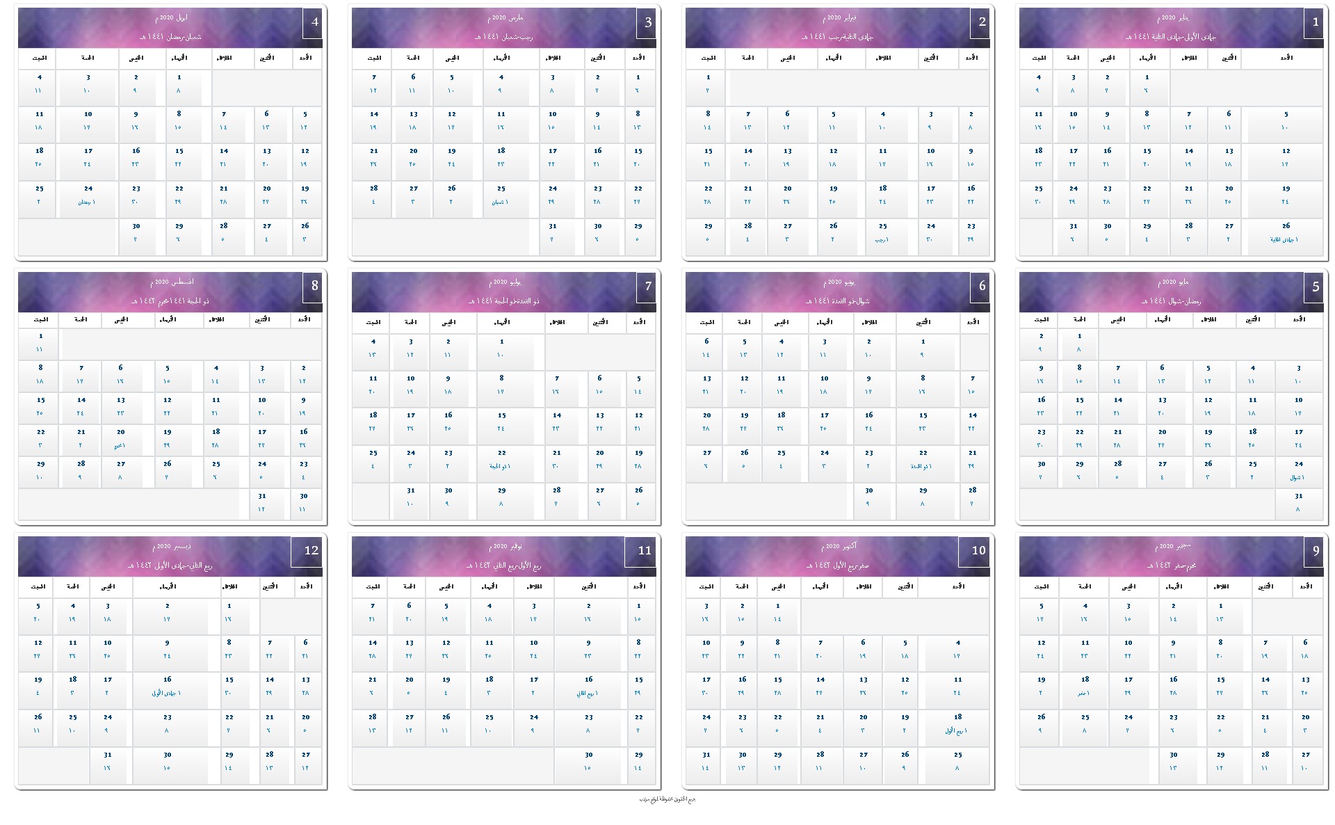 التقويم الهجري والميلادي لعام 1441هـ 2020م بالاجازات تكنو هوم