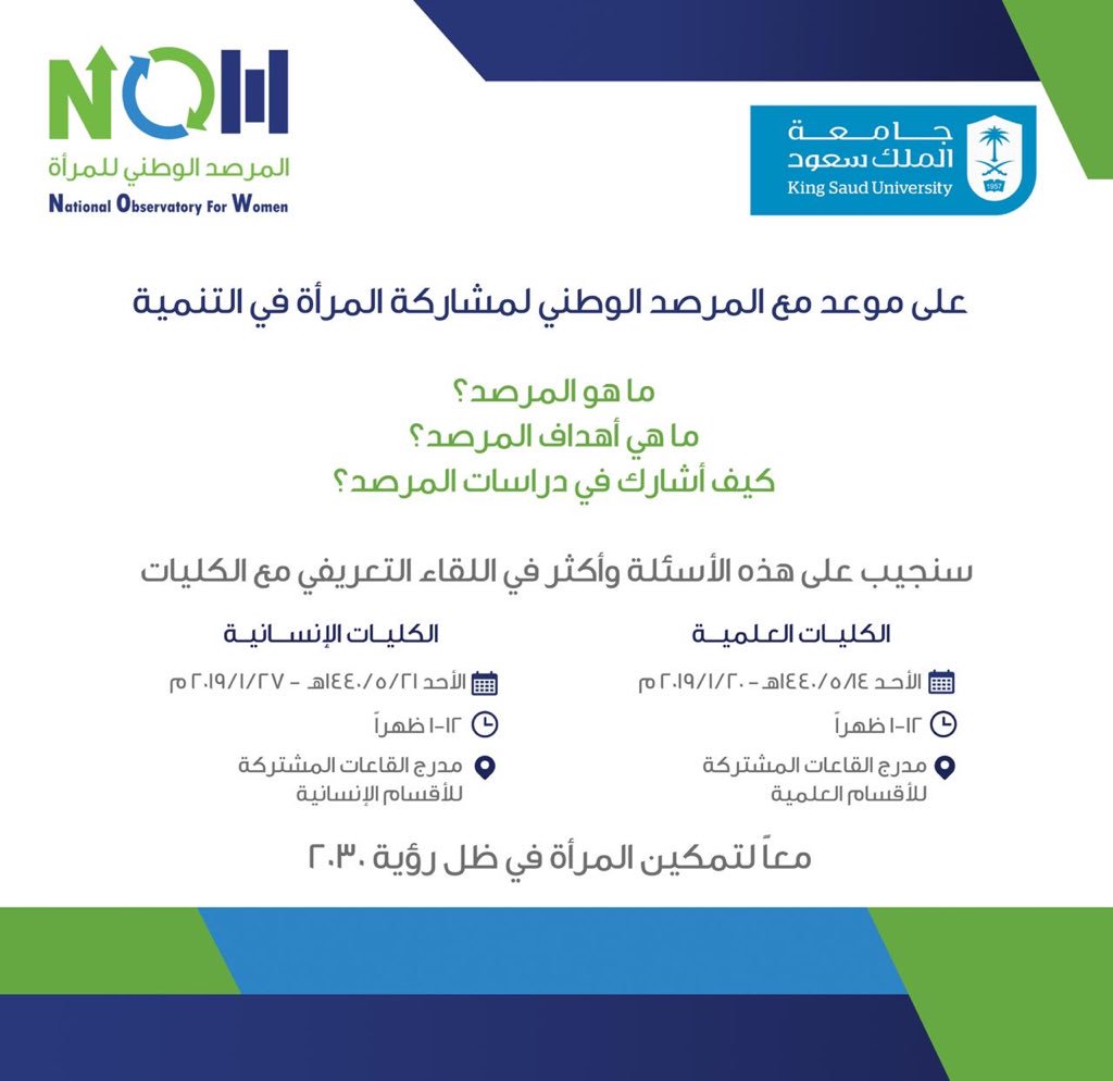 جامعة الملك سعود Twitterren يحدث الان المرصد الوطني لمشاركة المرأة في التنمية يقيم لقاء تعريفي بالكليات العلمية تحت شعار مع ا لتمكين المرأة في ظل رؤية 2030 Https T Co Dbajsaqqmo