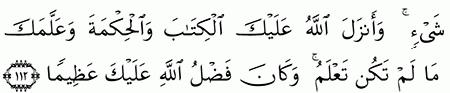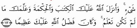 وكان فضل الله عليك عظيما و ع ل م ك م ا ل م ت ك ن ت ع ل م و ك ان ف ض ل الل ه ع ل ي ك ع ظ يما